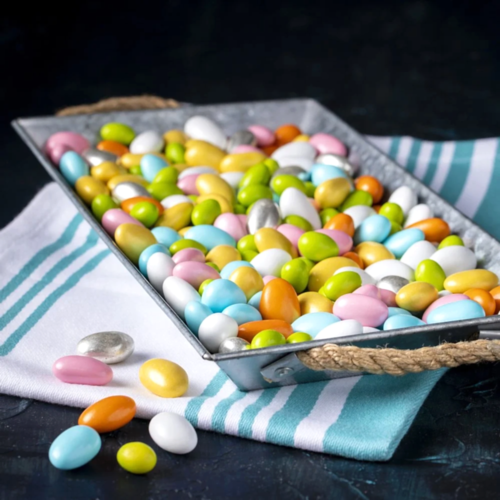 İçindekiler: Şeker Kaplama %39,2 (Şeker, Renklendiriciler (E171, E124, E131, E160e, E160a, E172), Parlatıcılar (E904, E903)), Sütlü Çikolata %38,8 (Şeker, Süttozu(inek), Kakao Yağı, Kakao Kitlesi, Emülgatör (Ayçiçek Lesitini), Doğal Vanilya Aroma Vericisi), Badem %22.